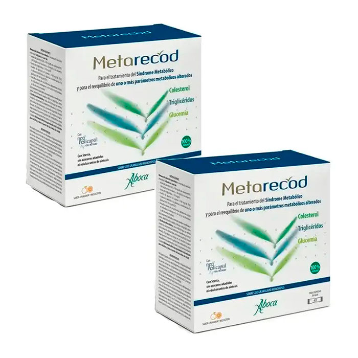 Aboca Metarecod Duplo es un producto sanitario innovador diseñado para el tratamiento del síndrome metabólico y la reeducación de los parámetros alterados de salud, como el colesterol, los triglicéridos y la glucemia.