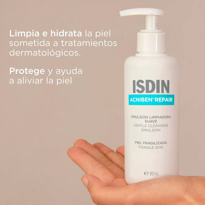 La Emulsión Limpiadora Facial Suave Acniben Repair ha sido diseñada precisamente para esto: limpia e hidrata la piel de forma delicada, respetando su fragilidad.