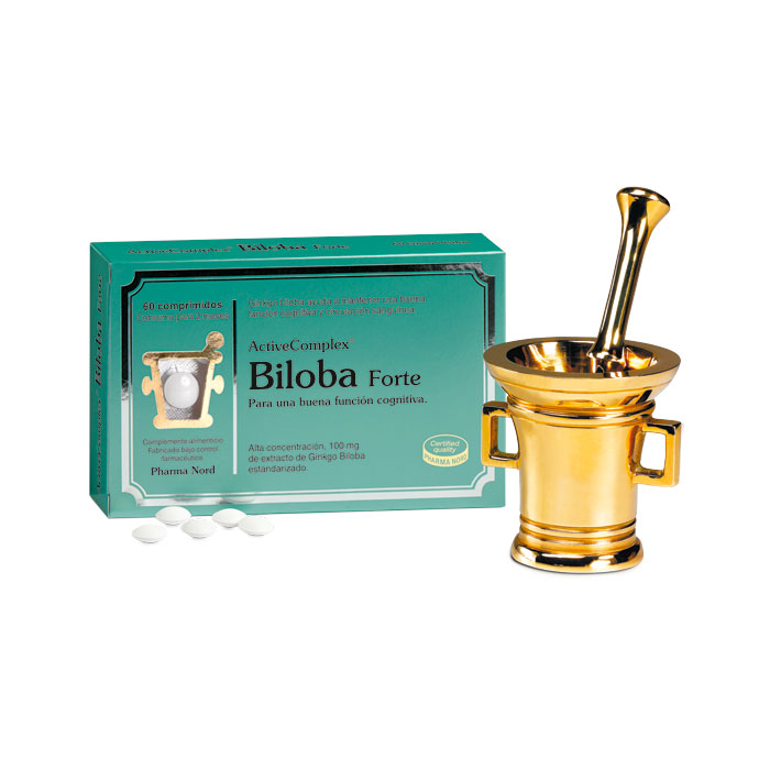 ActiveComplex Biloba Forte contiene un 24% de flavona-glucósidos, bioflavonoides responsables de la actividad antioxidante y de la capacidad de inhibir la agregación plaquetaria del Ginkgo, por ello pueden ayudar a prevenir enfermedades circulatorias. Contiene un 6% de lactonas de terpeno, que se han relacionado con el aumento de la circulación al cerebro y otras partes del cuerpo y ejercen una acción protectora en las células del cerebro.