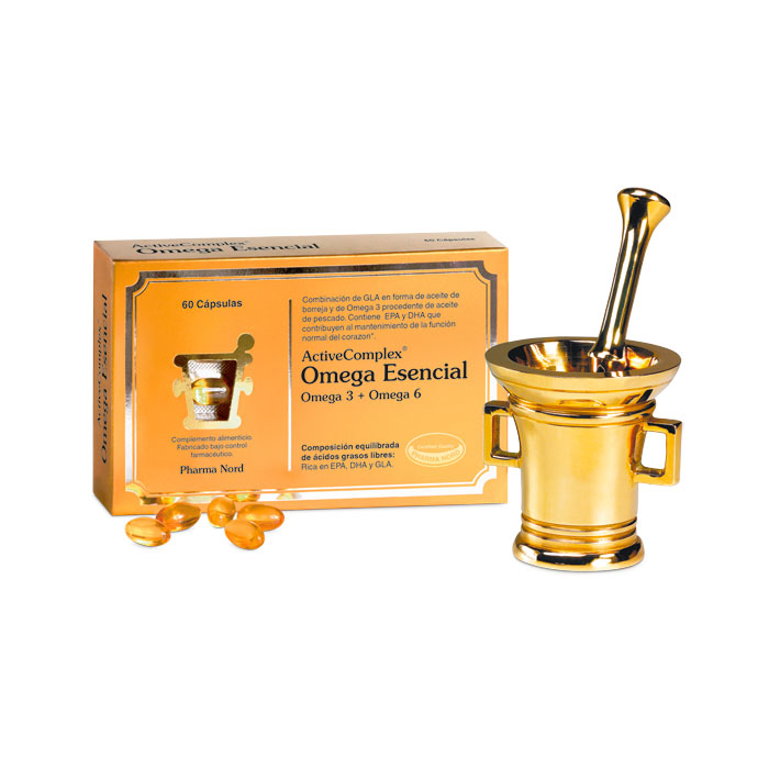 Activecomplex Omega Esencial es un complemento alimenticio con una fórmula equilibrada de Omega 3 y 6. Combinación de ácidos grasos esenciales para la sequedad de la piel.
