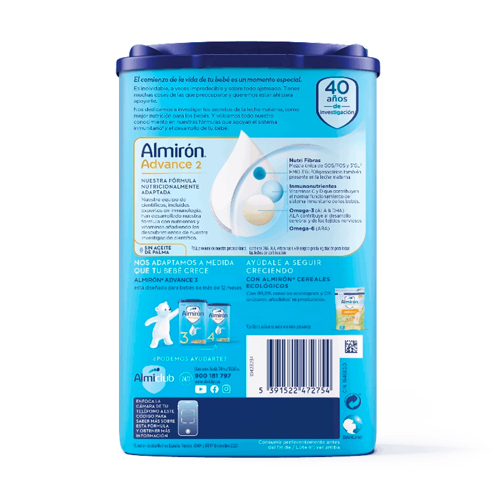 Almirón Advance 2 es una fórmula de continuación diseñada para bebés a partir de los 6 meses, una vez que se ha iniciado la alimentación complementaria.