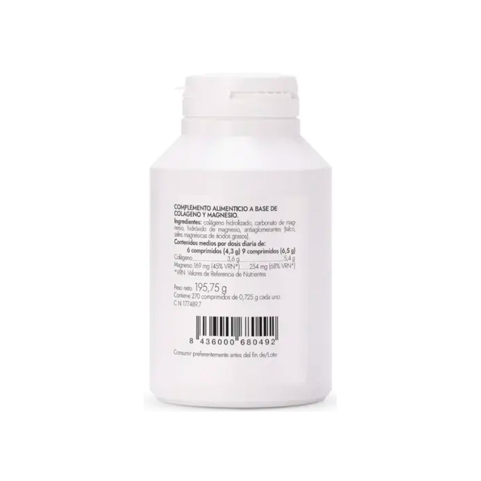 Colágeno hidrolizado, carbonato de magnesio, hidróxido de magnesio, antiaglomerantes (talco, sales magnésicas de ácidos grasos).
