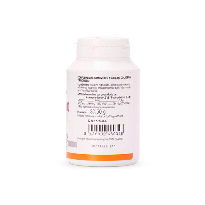Cola?geno hidrolizado, carbonato de magnesio (magnesio), antiaglomerantes (talco, estearato de magnesio), hidro?xido de magnesio (magnesio).