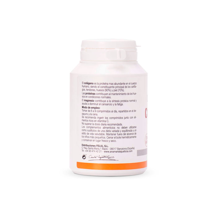 Ana Maria Lajusticia Colágeno con Magnesio es un complemento alimenticio formulado con colágeno que es la protei?na ma?s abundante en el cuerpo humano, siendo el constituyente esencial de los carti?lagos, tendones y huesos, por lo cual sus necesidades las tenemos a diario.