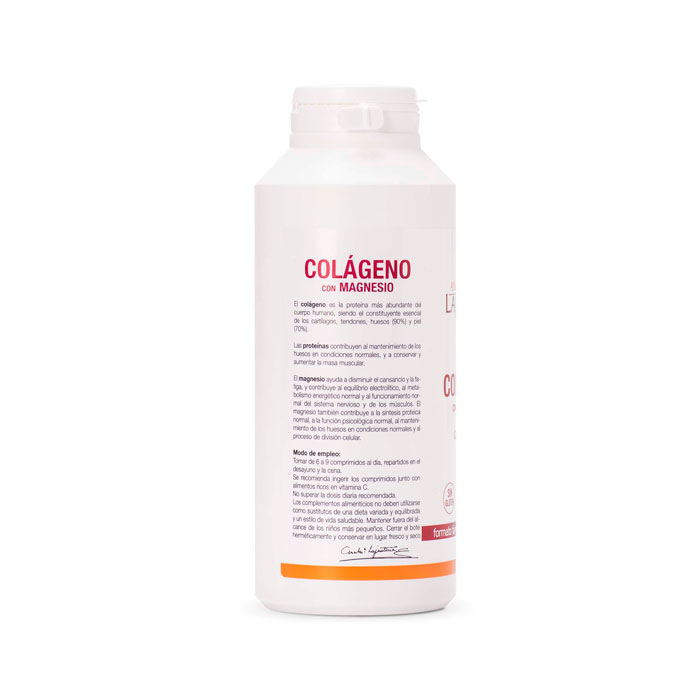 Ana Maria Lajusticia Colágeno con Magnesio es un complemento alimenticio formulado con colágeno que es la protei?na ma?s abundante en el cuerpo humano, siendo el constituyente esencial de los carti?lagos, tendones y huesos, por lo cual sus necesidades las tenemos a diario.