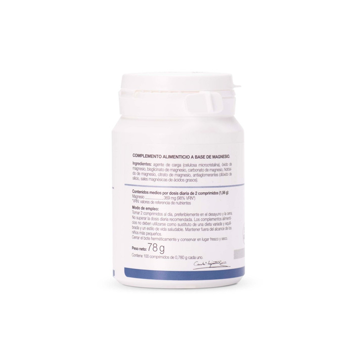Agente de carga (celulosa microcristalina), óxido de magnesio, bisglicinato de magnesio, carbonato de magnesio, hidróxido de magnesio, citrato de magnesio, antiaglomerantes (dióxido de silicio, sales magnésicas de ácidos grasos).