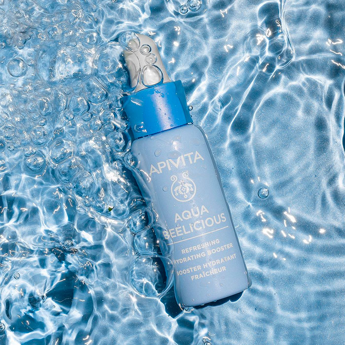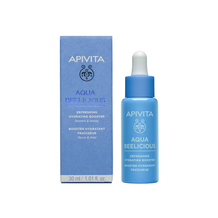 El Booster Hidratante y Refrescante Aqua Beelicious de Apivita es un potente concentrado en textura de gel acuoso diseñado para ofrecer una recarga hídrica inmediata a las pieles más sedientas.