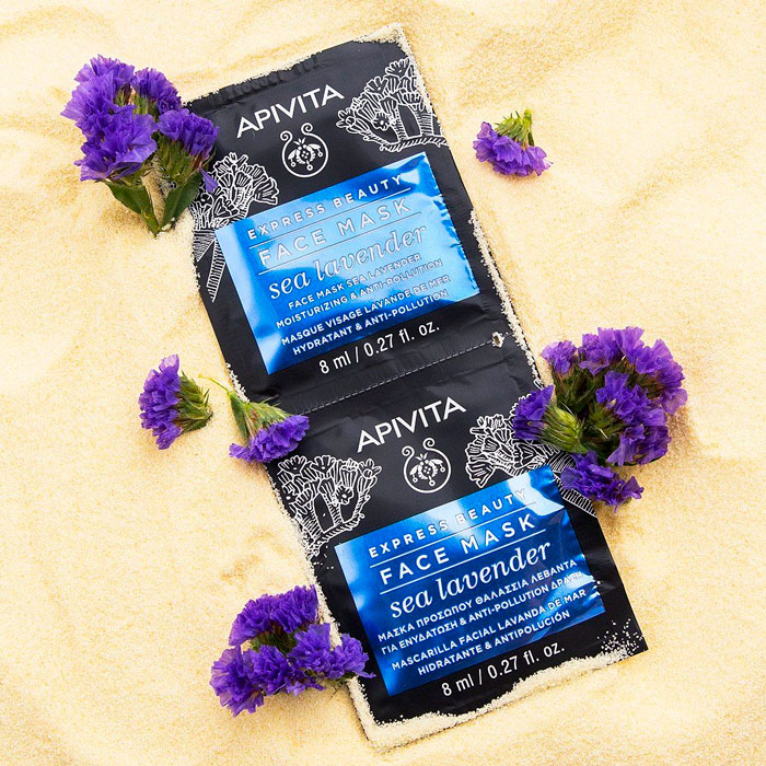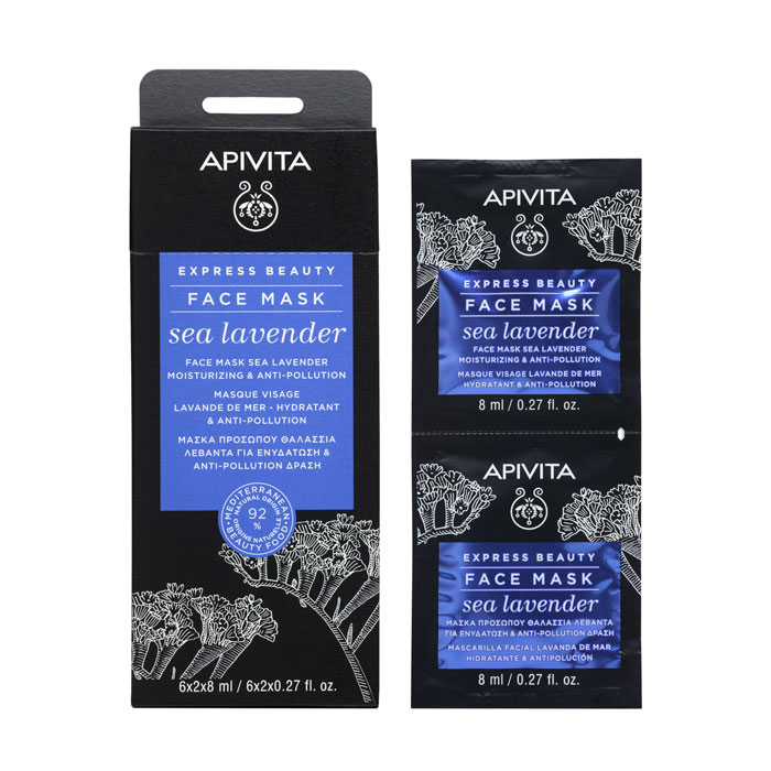 La Mascarilla Facial de Lavanda de Mar Express Beauty de Apivita es el escudo perfecto para las pieles urbanas que sufren el estrés de la contaminación y los factores externos.