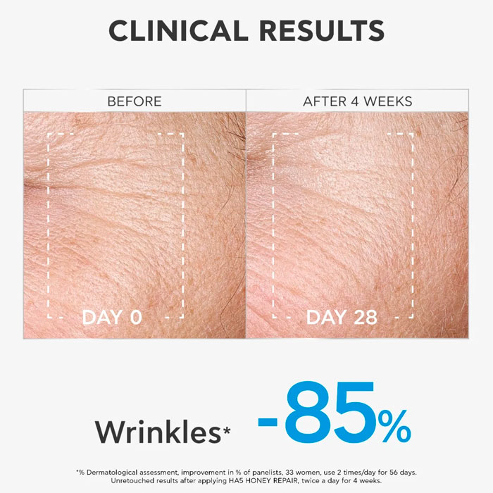 Su fórmula de vanguardia combina un amplio espectro de 5 pesos moleculares de ácido hialurónico al 2%, lo que garantiza una recuperación de la hidratación en todas las capas de la dermis, desde la superficie hasta las capas más profundas.