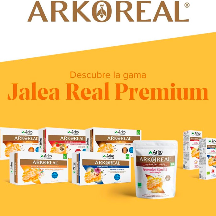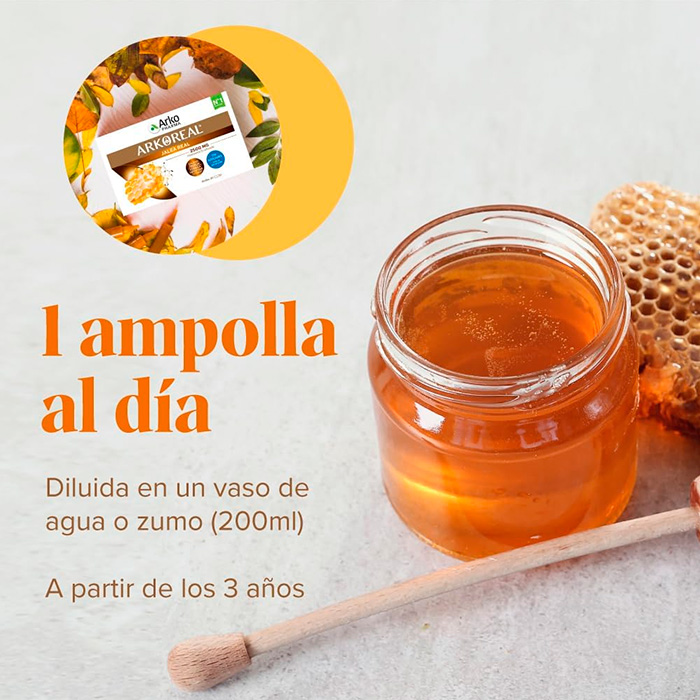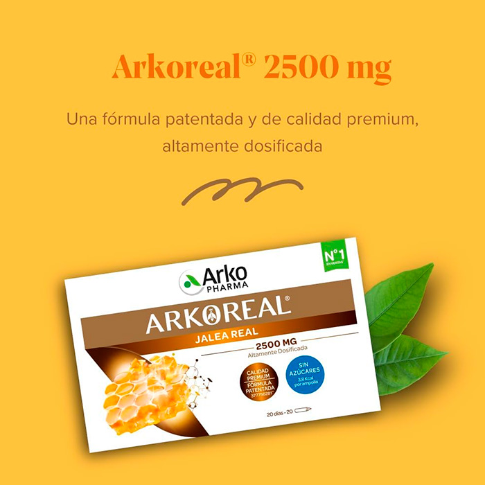 Arkopharma Arkoreal Jalea Real 2500 mg es el complemento alimenticio ideal para quienes buscan un refuerzo extra de vitalidad con la máxima concentración de jalea real del mercado.