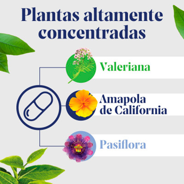 Agente de carga: celulosa – Extracto de parte aérea de Amapola de California (Eschscholtzia californica Cham.) – Extracto de órganos subterráneos de Valeriana (Valeriana officinalis L.) - Antiaglomerantes: ácido esteárico, talco, estearato de magnesio, goma de celulosa reticulada – Extracto de parte aérea de Pasiflora (Passiflora incarnata L.) – Maltodextrina – Colorante concentrado de spirulina – Almidón de arroz – Melatonina – Vitamina B6. Recubrimiento del comprimido: hidroxipropilmetilcelulosa - hidroxipropilcelulosa ácido esteárico, celulosa, etilcelulosa, cerca de carnauba.