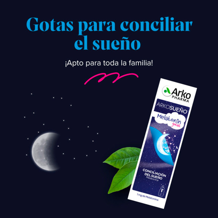 Arkosueño Melatonina Gotas es un complemento alimenticio diseñado para ayudarte a conciliar el sueño de forma natural y rápida.