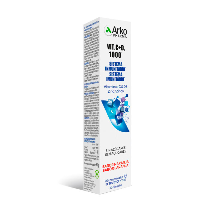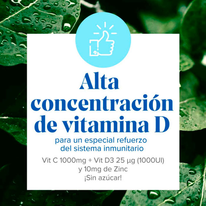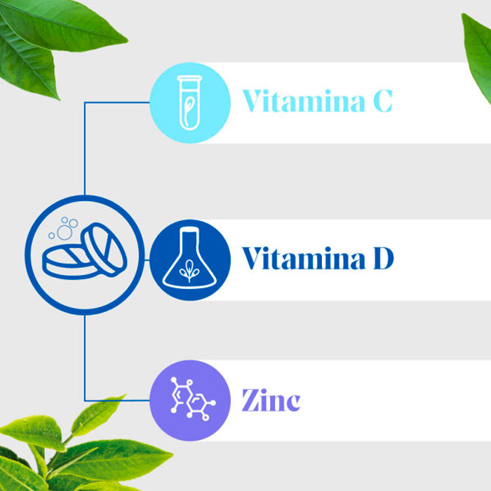 Cada comprimido efervescente de delicioso sabor a naranja y sin azúcares aporta una alta concentración de tres micronutrientes esenciales para la inmunidad: