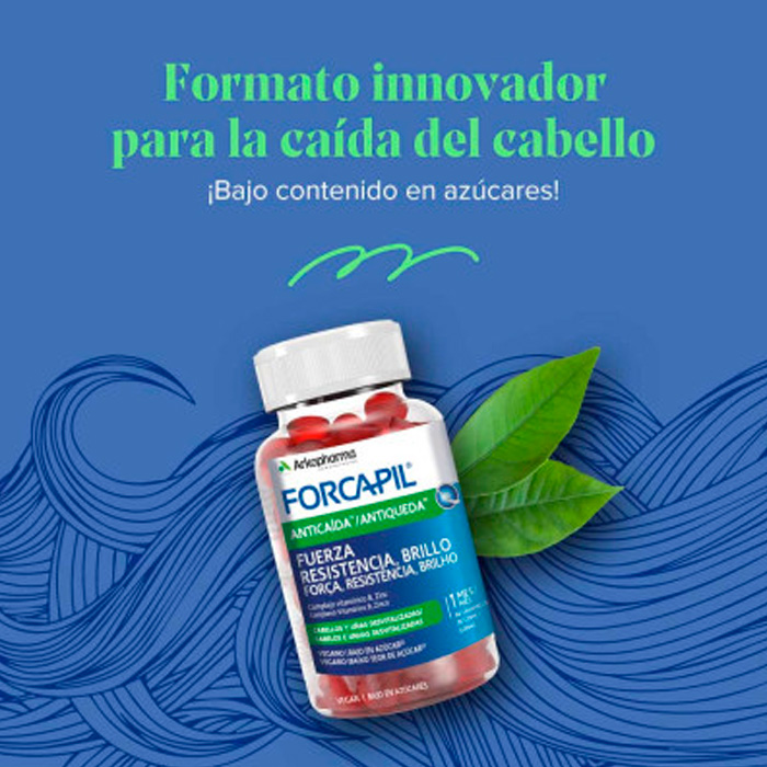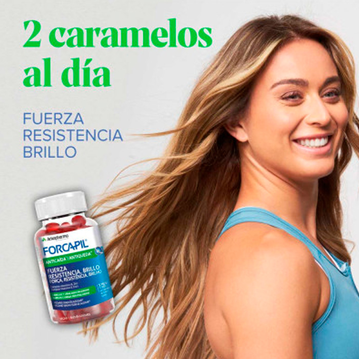 Arkopharma Forcapil Anticaída son caramelos de goma que proporcionan al cabello fuerza, resistencia y brillo gracias a su fórmula altamente concentrada en Adiantum capillus, Vitamina B5, B6, B8 (Biotina), B9 y Zinc.