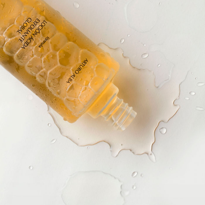 Loción Ácida Exfoliante Global: Un paso clave para una exfoliación profunda. Esta loción ácida ayuda a renovar la superficie de la piel, eliminando las células muertas y mejorando la textura y luminosidad.