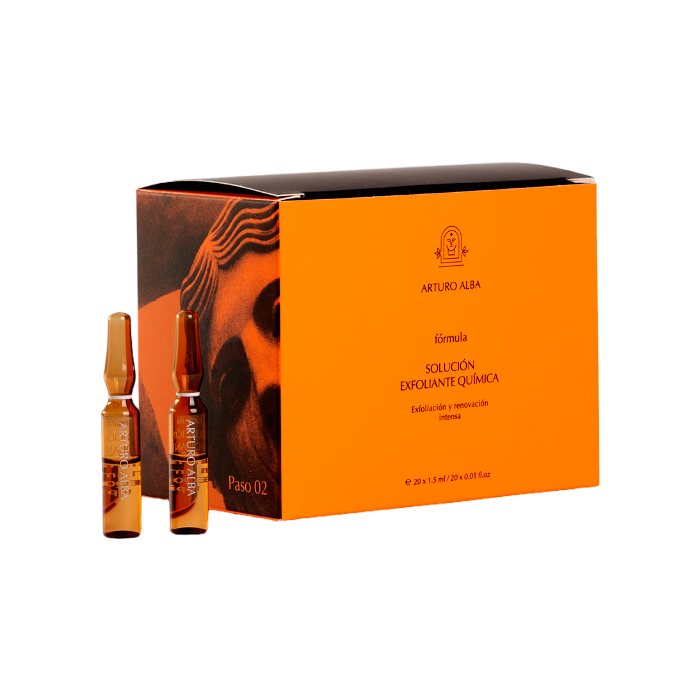 La Solución Exfoliante Química de Arturo Alba es un tratamiento facial a base de ampollas que contiene un complejo de ácidos libres para exfoliar la piel y mejorar su textura, tono y luminosidad.