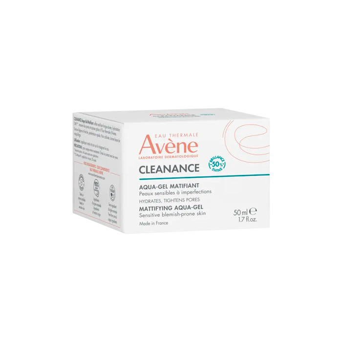Avene Cleanance Aqua-Gel Matificante es un gel acuoso que reduce los brillos a la mitad de forma instantánea, cerrando los poros y brindando una hidratación continua durante 24 horas.