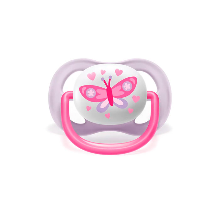 El Chupete Avent Ultra Air Happy 0-6m cuenta con orificios extragrandes que mantienen la piel sensible del bebé suave y seca, y una tetina de silicona extrafirme para dientes y encías en crecimiento.