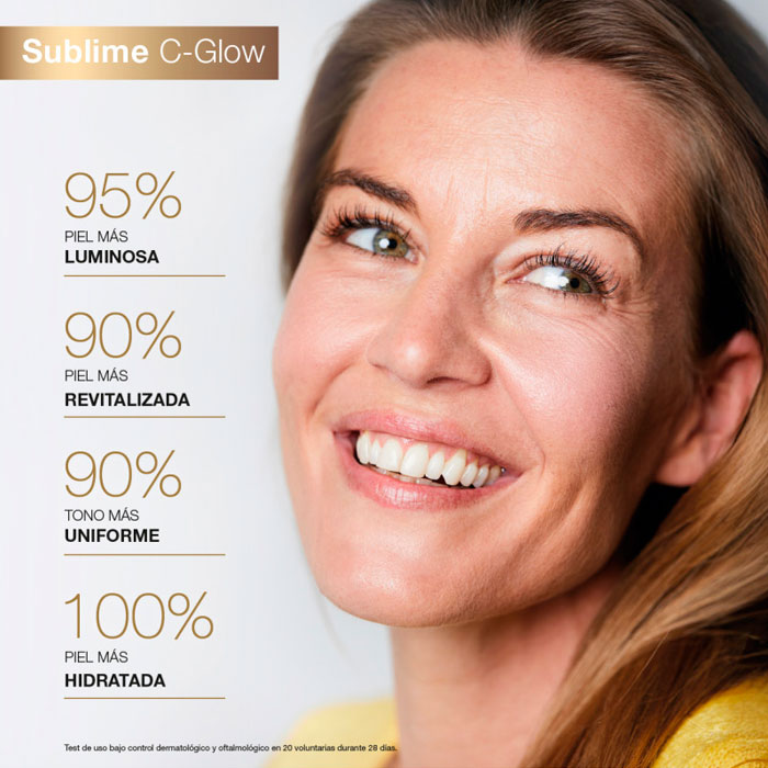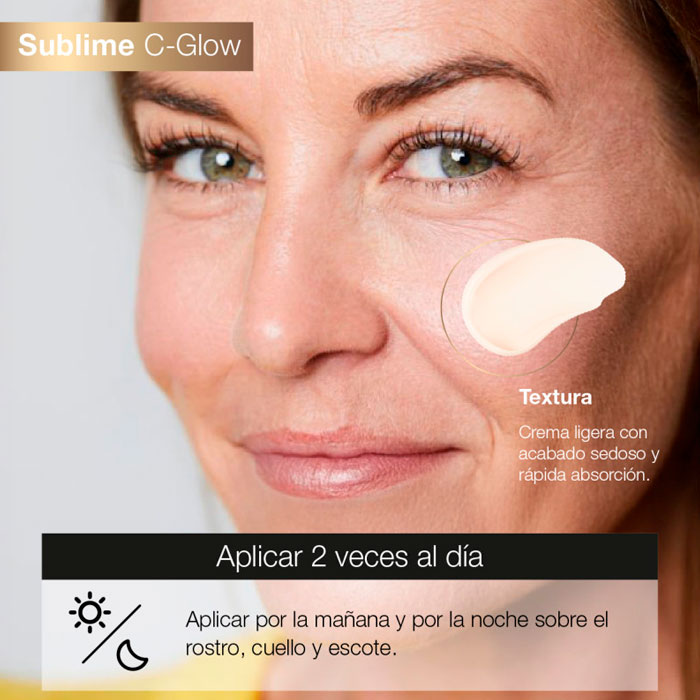Más allá de su potente acción antiedad y revitalizante, Sublime C-glow proporciona una hidratación inmediata y duradera, dejando tu piel confortable, flexible y llena de vida desde la primera aplicación.