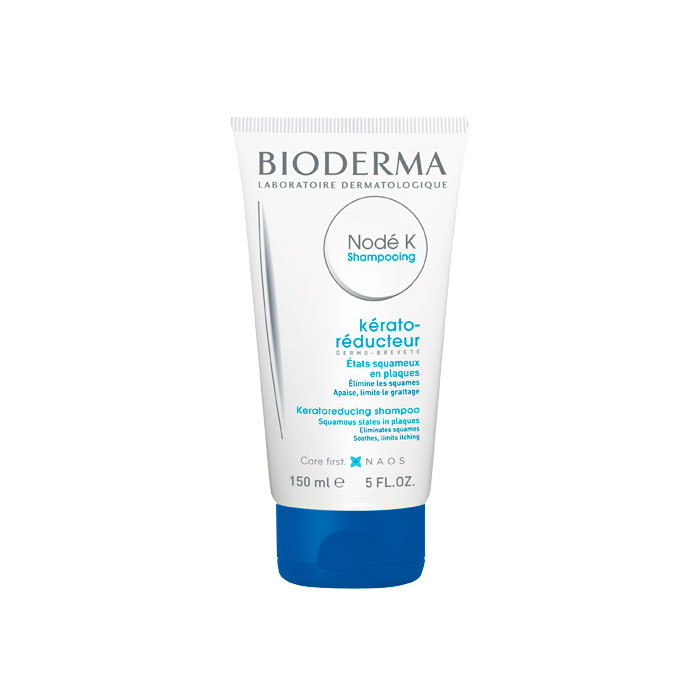 El Champú Queratoreductor Bioderma Nodé K Shampooing limpia con suavidad, activa la eliminación de las escamas, evita su reaparición, alivia y limita el picor, gracias a la acción biológica sinérgica del ácido salicílico y extracto de enebro, potentes agentes queratolíticos y queratorreductores.