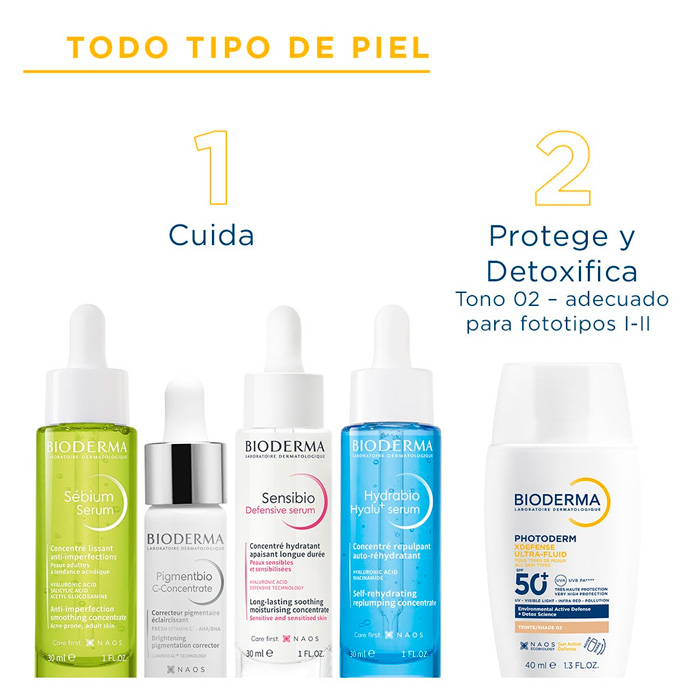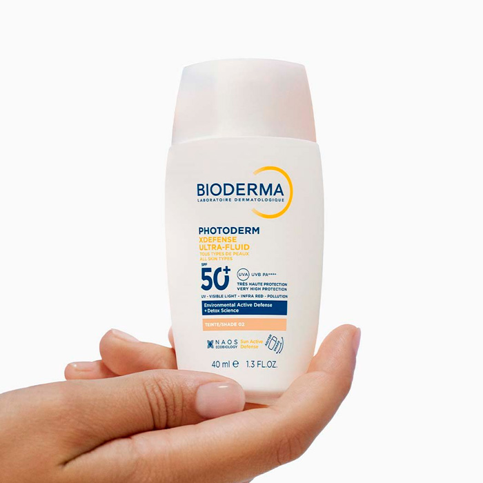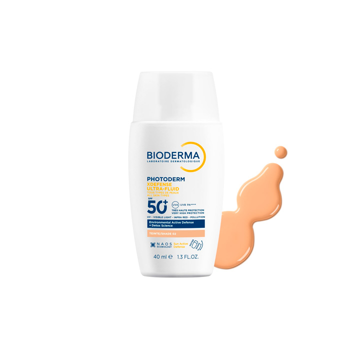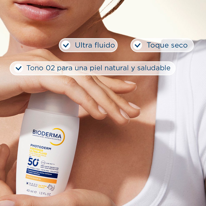 Bioderma Photoderm Defense Ultra-fluid SPF50+ Tono 02 es un protector solar facial diario innovador que ofrece una protección global contra los agresores ambientales, el sol y la contaminación.