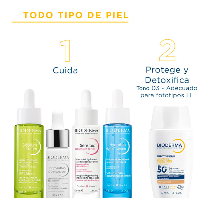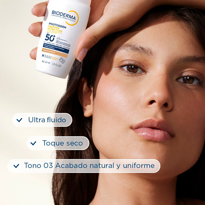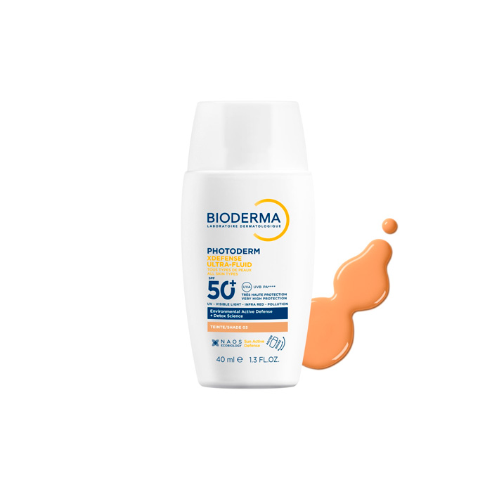Bioderma Photoderm Xdefense Ultra-fluid SPF50+ Tono 03 es un protector solar facial diario avanzado que combina alta protección solar con un efecto detox y un toque de color.