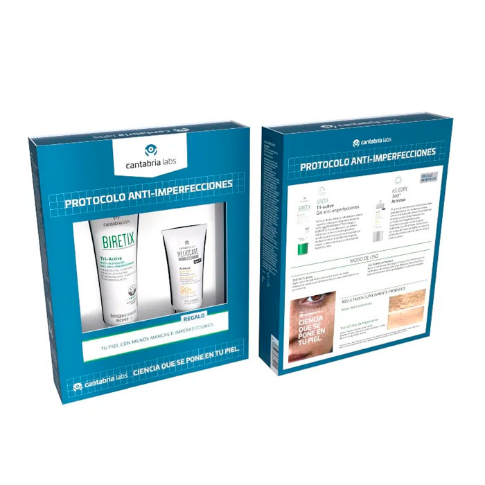 Este pack combina la acción correctora y renovadora del gel anti-imperfecciones con la protección solar específica para pieles grasas.