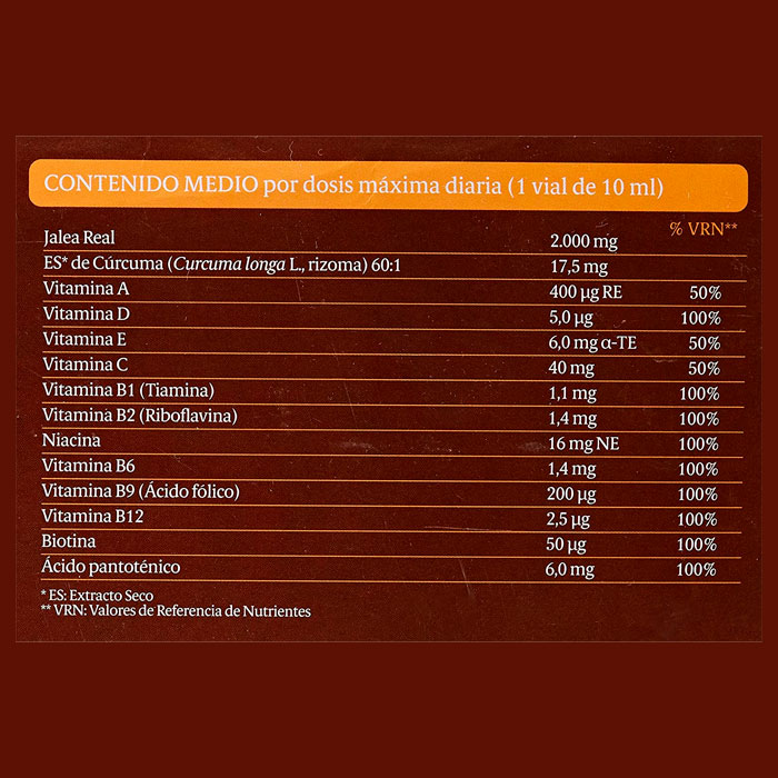 Black Bee Jalea Real Vitalidad es un complemento alimenticio que ayuda a portar un extra de vitalidad a tu día a día. Combina el poder de la Jalea Real y la Cúrcuma con las propiedades de las vitaminas C, B6 y B12, nutrientes que ayudan a reducir el cansancio y la fatiga.