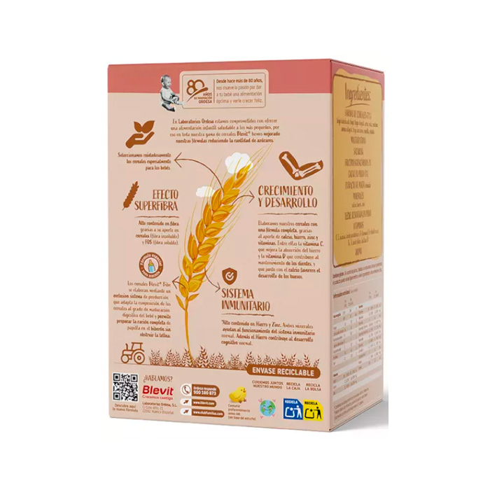 Blevit Bibe 8 Cereales es un alimento infantil que está especialmente diseñado para bebés a partir de los 5 meses. Está elaborada con un exclusivo sistema de producción que permite preparar la ración completa de papilla en el biberón sin obstruir la tetina.