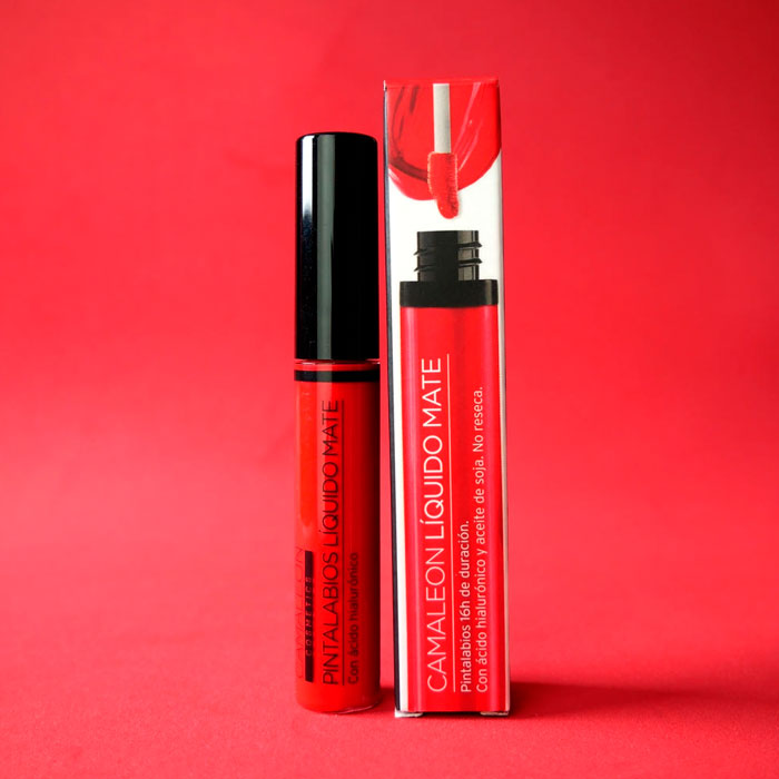 El Labial Líquido Mate Rojo Fuego Camaleon es un pintalabios líquido permanente de acabado mate, que ofrece hasta 16 horas de duración.