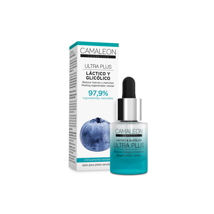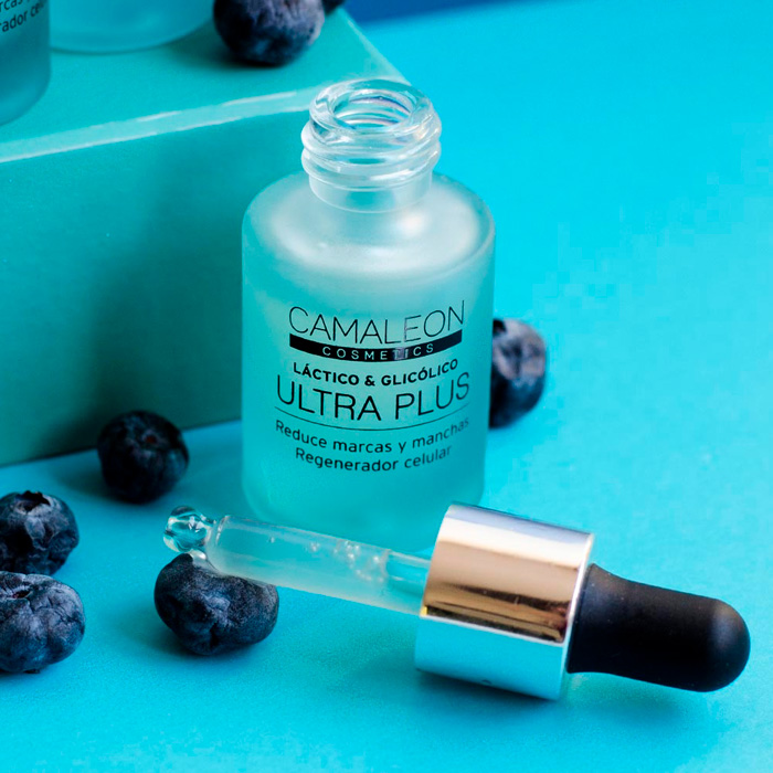 El Serum Ácido Glicólico y Láctico Ultra Plus Camaleon está formulado a partir de un complejo de extractos naturales ricos en alfa hidroxiácidos naturales que actúan como exfoliantes promoviendo la proliferación celular.