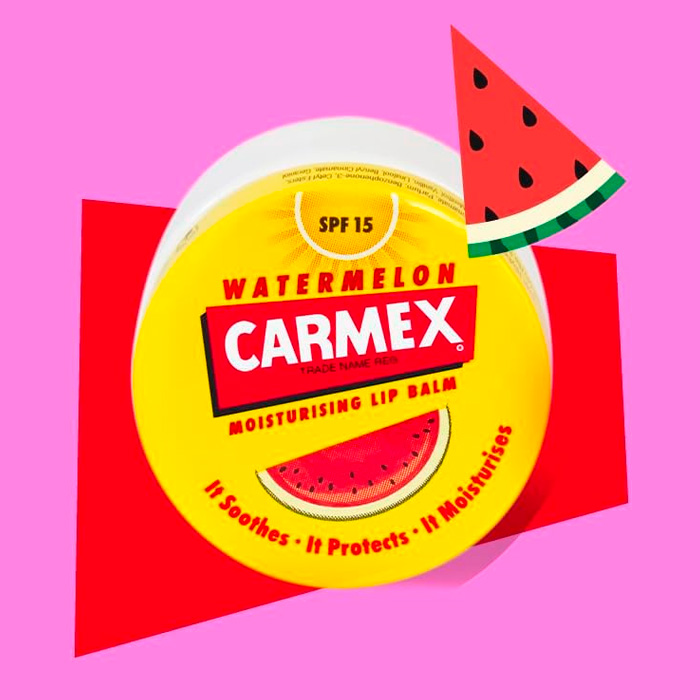Carmex Bálsamo Labial Spf15 Sandía es un bálsamo labial que combina hidratación, protección y un delicioso sabor a sandía.
