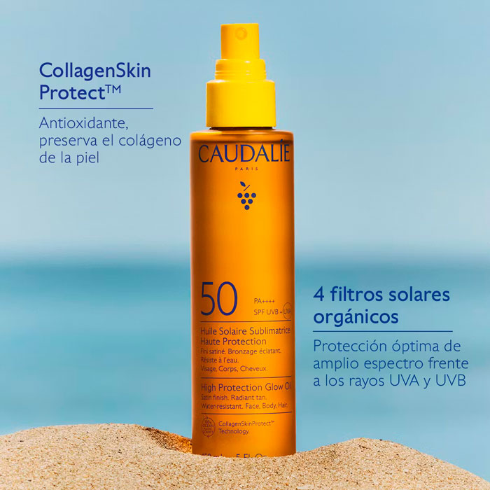 El Aceite Solar Embellecedor de Alta Protección SPF50 de Caudalie Protección Solar es el aliado perfecto para quienes buscan una protección solar superior sin renunciar a una piel radiante.