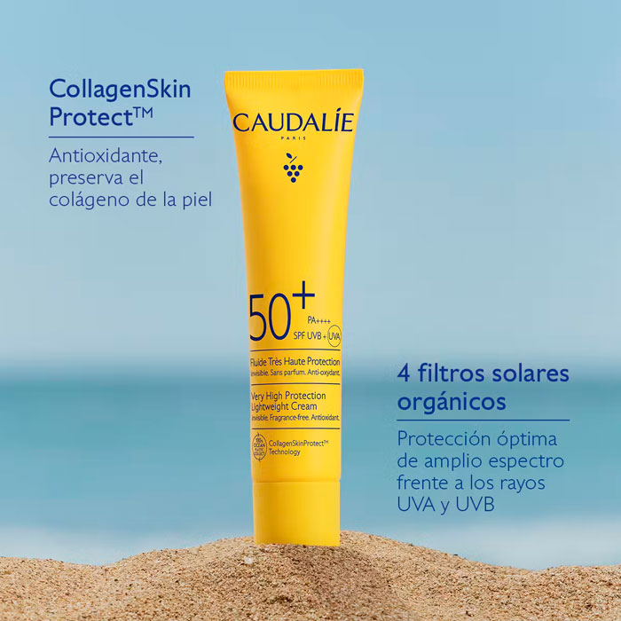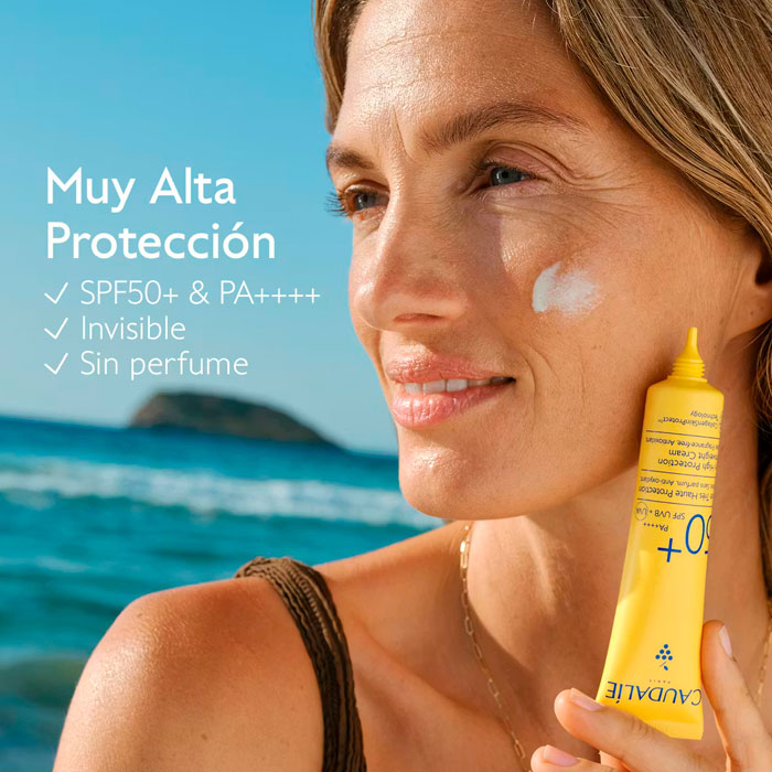 Caudalie Protección Solar Fluido de Muy Alta Protección SPF50+ es la defensa diaria definitiva para el rostro y el escote.