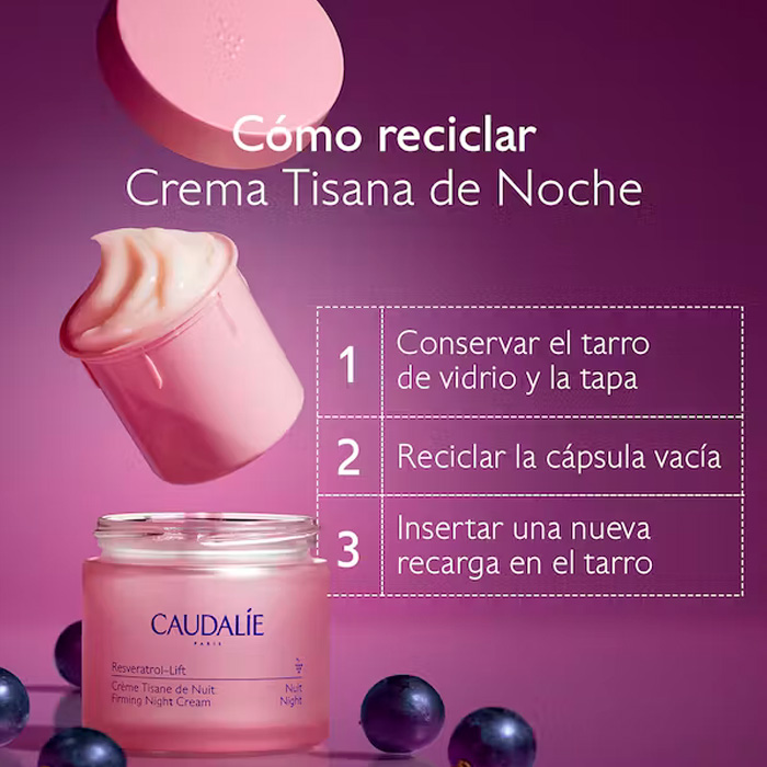 La Recarga de la Crema Tisana de Noche Caudalie Resveratrol Lift regenera la piel para estar bella al despertar: los rasgos están descansados y alisados, la piel está firme, el cutis está radiante.