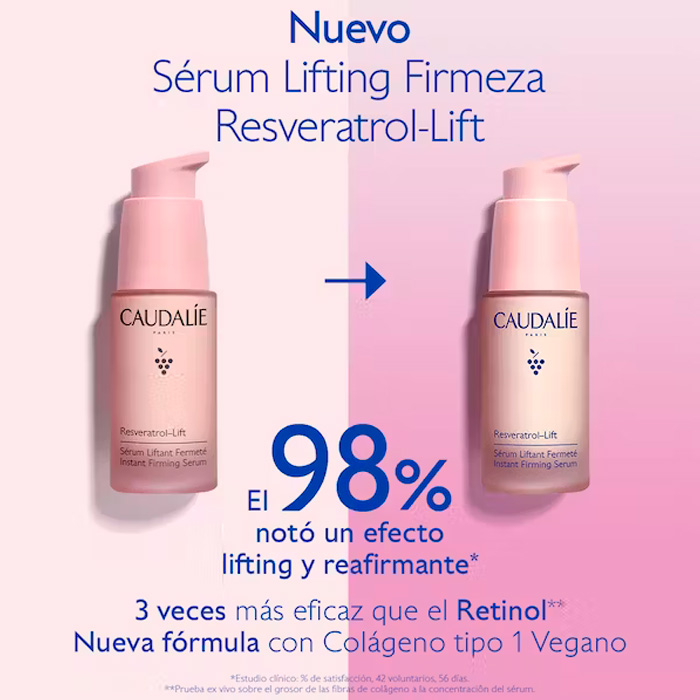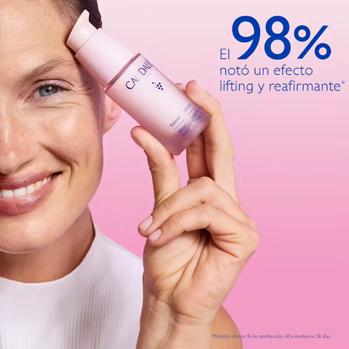 El Sérum Lifting Firmeza Caudalie Resveratrol Lift corrige las arrugas y alisa el óvalo facial. Su fórmula ultraconcentrada actúa instantáneamente tensando los rasgos y reafirmando visiblemente la piel.