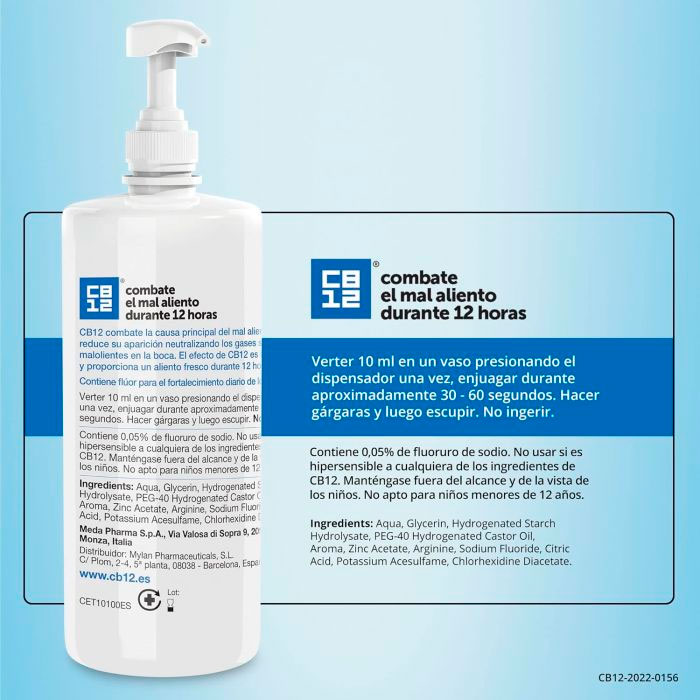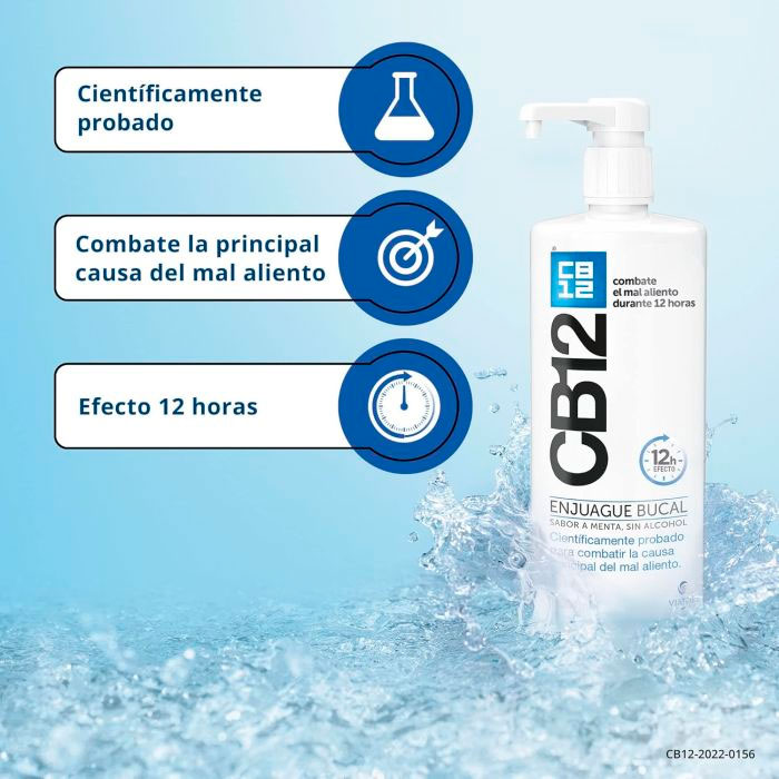 CB12 Enjuague Bucal Halitosis Sabor Menta es un colutorio científicamente probado para abordar la causa principal del mal aliento, ofreciéndote una solución efectiva y duradera.