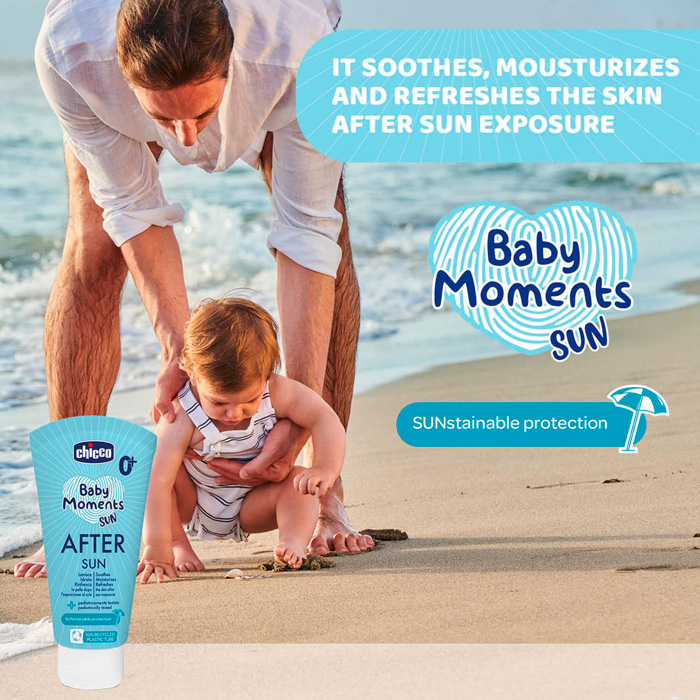 After Sun de Chicco Baby Moments es el tratamiento reparador ideal para mimar la piel de los más pequeños después de la exposición solar.
