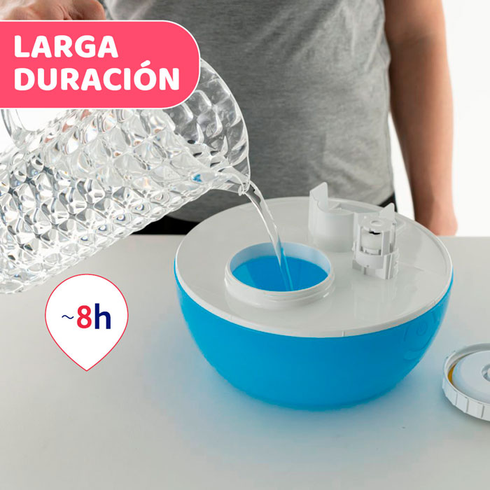 Chicco Humi Fresh tiene una autonomía de más de 8 horas y una capacidad de 2 litros con 4 niveles de flujo, para adaptarse a las necesidades del bebé.