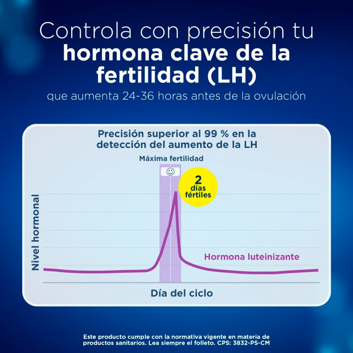 La prueba de ovulación Clearblue Digital ayuda a maximizar las probabilidades de quedarse embarazada de forma natural al determinar los 2 días más fértiles de cada ciclo a través de la medición de los cambios en los niveles de una hormona de la fertilidad clave: la hormona luteinizante (LH). Es más preciso que los métodos basados en la temperatura y el calendario e indica resultados totalmente claros en una pantalla digital.