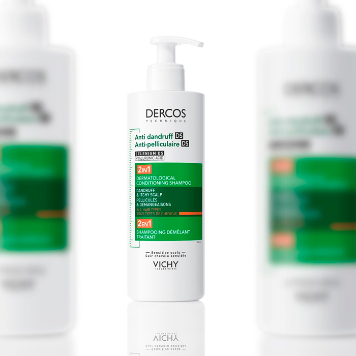 Dercos Champú Acondicionador Anticaspa DS 2 en 1 combina la eficacia contra la caspa con un cuidado profundo del cabello y cuero cabelludo.