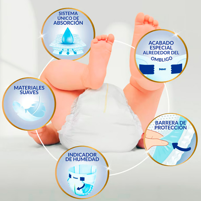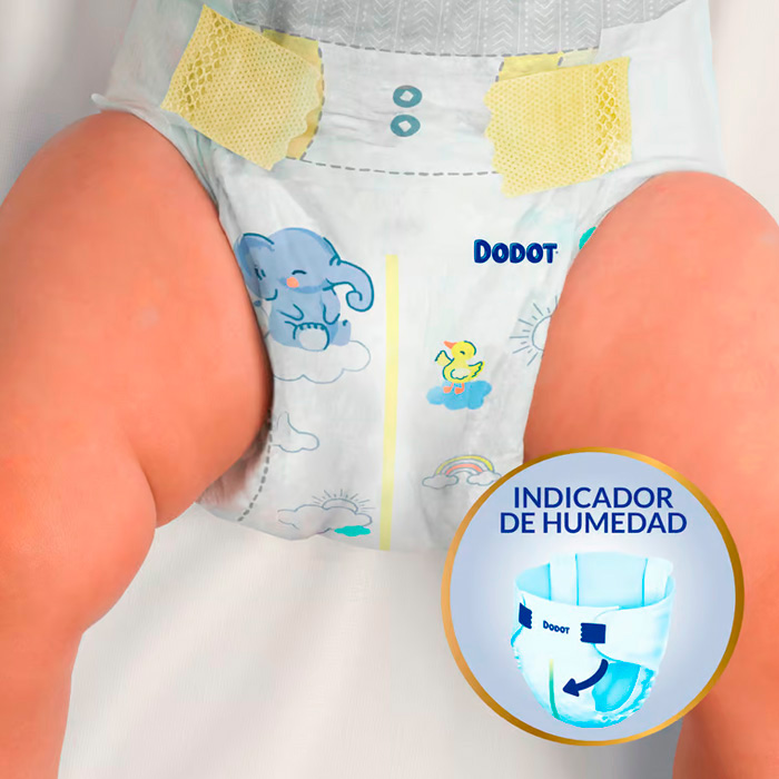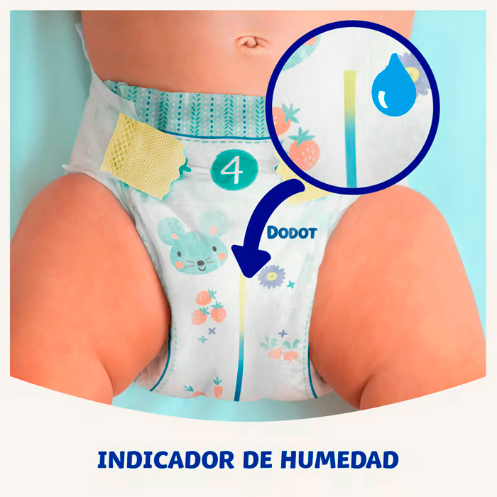 Indicador de humedad: Te permite saber cuándo es necesario cambiar el pañal, evitando el contacto prolongado de la piel del bebé con la humedad.
