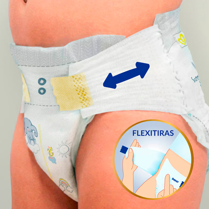 Sistema de 3 capas de absorción: Absorbe la humedad al instante, alejándola de la piel de tu bebé y ayudando a prevenir irritaciones.