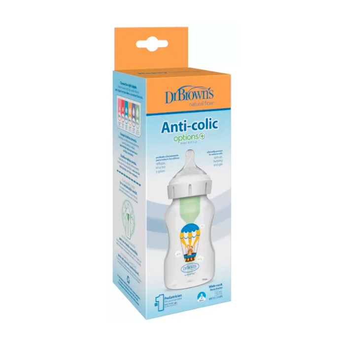 El Biberón Anticólico Options Plus Boca Ancha Conejo Globo Dr Brown's incluye un sistema de ventilación que reduce los cólicos desde el nacimiento, ayudando a la digestión y a reducir los problemas de alimentación.