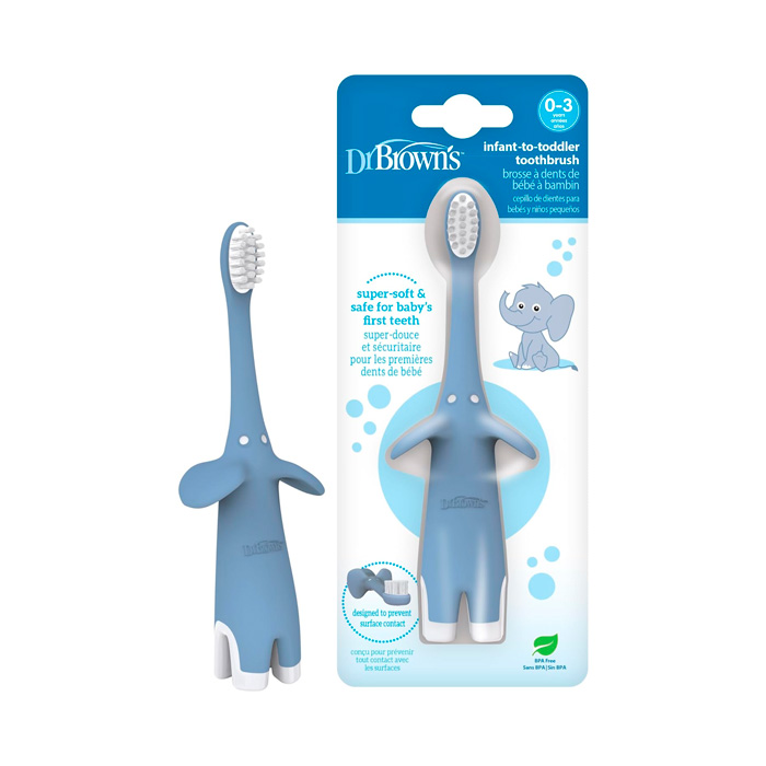El Cepillo de Dientes Dr Brown´s Infantil Elefante Azul está indicado para la higiene diaria de los bebés a partir del nacimiento y hasta los 3 años.