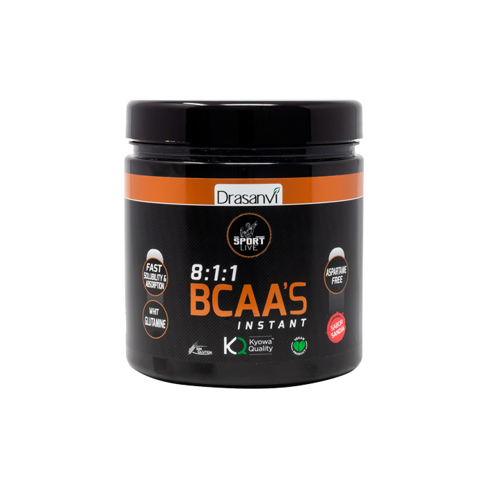 Drasanvi Sport Live BCAA + Glutamina Kyowa Sabor Sandía es un complemento alimenticio indicado para apoyar la recuperación muscular después del ejercicio intenso y mejorar el rendimiento deportivo.