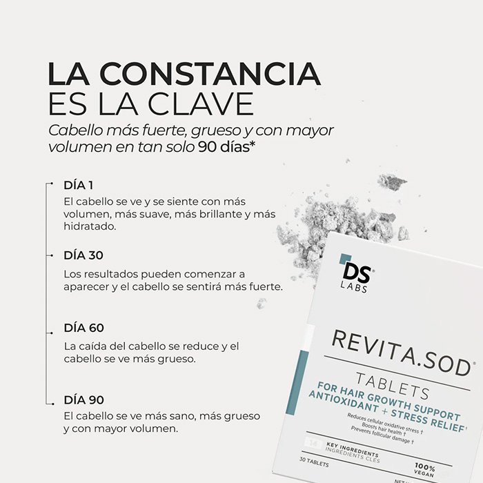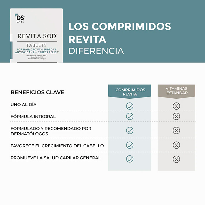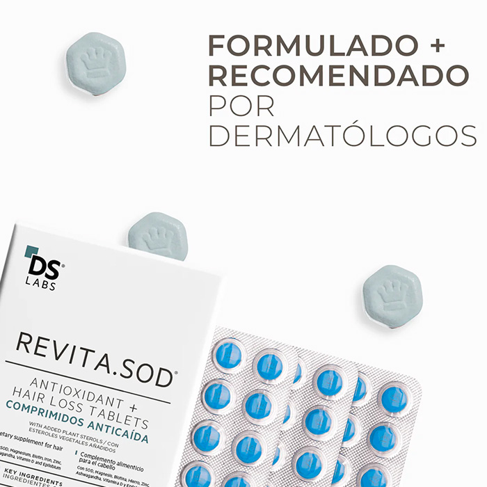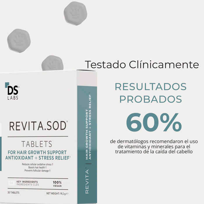 Revita.Sod 90 cápsulas de Ds Laboratories es un nutracéutico de última generación diseñado para estimular el crecimiento del cabello desde el interior, combatiendo específicamente los efectos negativos del estrés y el daño oxidativo.