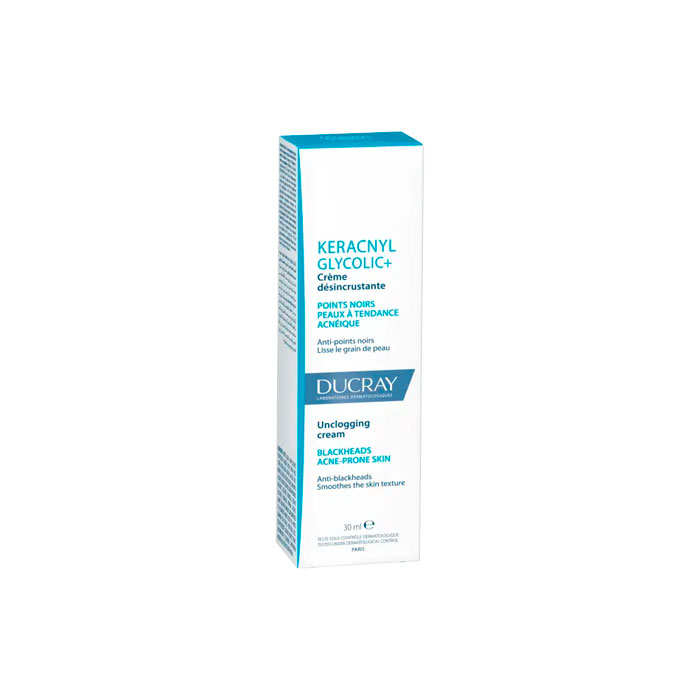 La Crema Desinscrustante Ducray Keracnyl Glycolic+ ayuda a eliminar los puntos negros y las imperfecciones de la piel con tendencia acneica. También combate los brillos regulando la producción excesiva de sebo y suavizando la piel.