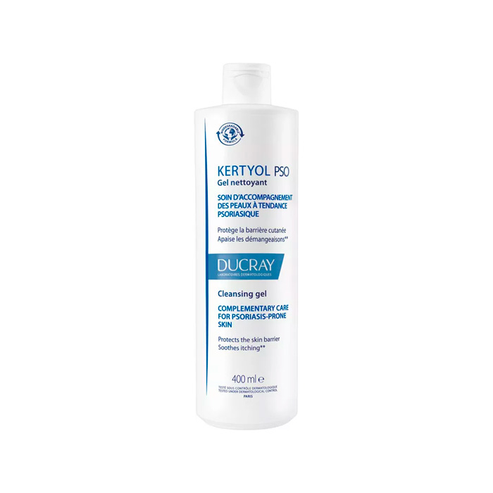 El Gel Limpiador Sobregraso Ducray Kertyol PSO está recomendado para la higiene diaria de la rostro y cuerpo de las pieles con tendencia psoriásica. Indicado en caso de placas de eczema, sequedad y picores asociados a la sequedad cutánea.