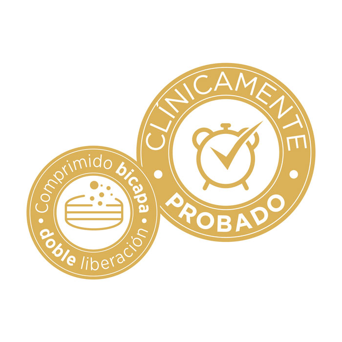 Segunda capa (liberación prolongada): Libera de forma gradual el resto de los componentes como el Complejo Gabaglicin 6®, valeriana, amapola de california, pasiflora y vitamina B3, que trabajan para mantener el sueño natural, potenciar la relajación y mejorar la calidad del descanso a lo largo de la noche.